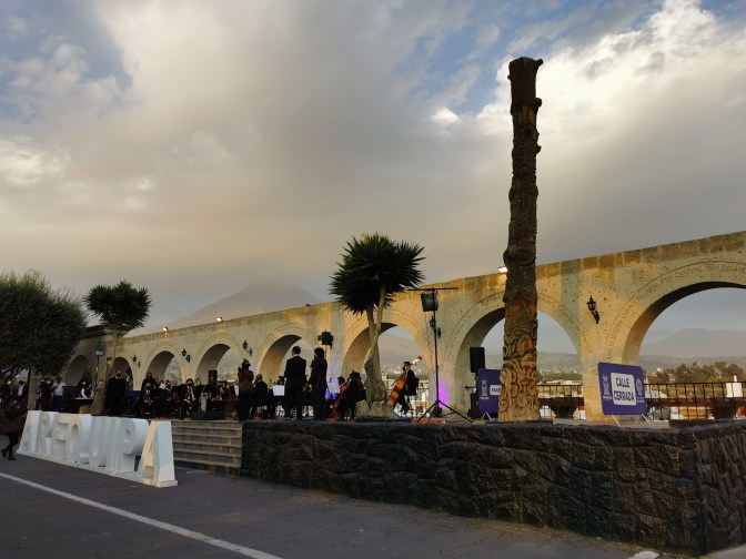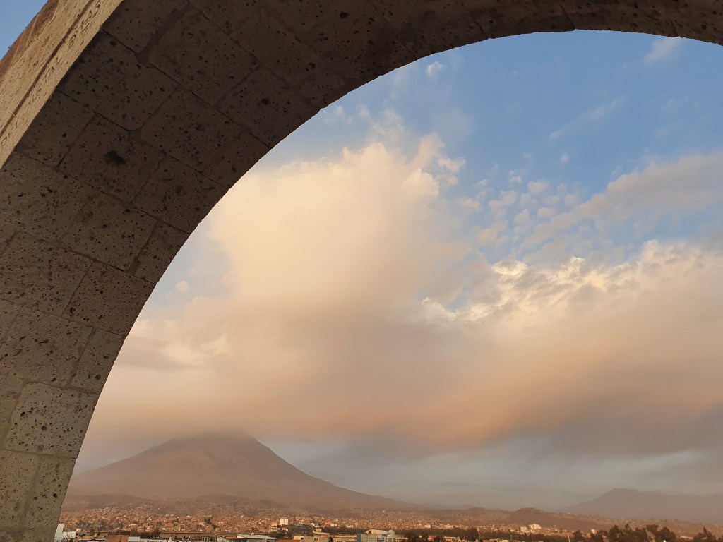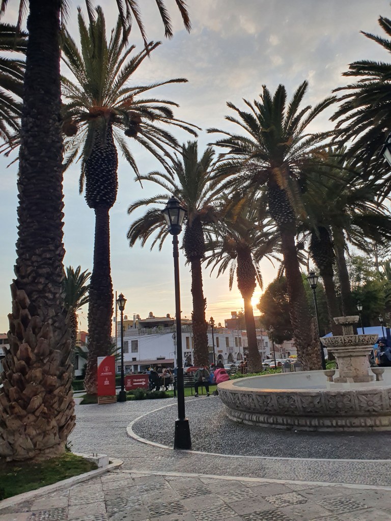 But in the late afternoon, we left to walk up to Yanahuara for sunset. This area is a bit of a walk up the hill from the centre of the city but is famous for its panoramic views. When we got there, however, we were treated to an orchestra playing classical music for some sort of graduation / birthday party / celebration. With the old church on one side of the plaza, the arched viewpoint on another, the music really made this an atmospheric occasion. So we bought some Queso Helado, sat under the palm trees, and enjoyed the experience. And yes, your Spanish is not deserting you – I did just say ‘cheese ice-cream’. This is a delicacy that came from Arequipa and does not actually contain any cheese. I have no idea why it has that name but it was really tasty. We could have stayed there for hours but, unfortunately, we had to get back down so that we could catch our next night bus. Even without the music, this would have been a lovely place to come and relax and eat cheese ice-cream.