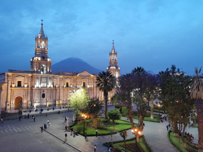 In Puno, we had a few hours until our next night bus, so we wandered to the main square and had a nice meal. Then it was time to head to Arequipa…