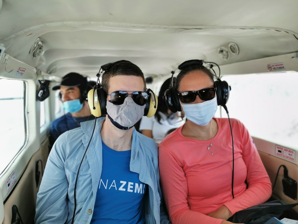 Given that we had not planned on doing the flight, we hadn’t really done any research on what we were going to see. So there was an excited anticipation as we sorted the required paperwork and waited for our turn. There were six of us tourists to go with the two pilots, so after taking some photos with the plane, it was time to head off.