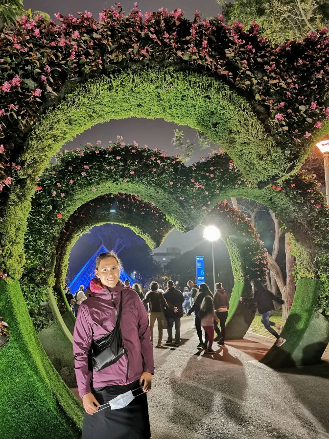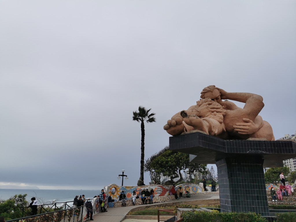 Along the coast and on top of the cliffs is a very nice pedestrian path that takes you through a few of Lima’s districts. At various points are little parks, food stalls and ice cream parlours. We spent a very nice afternoon strolling along this path; admiring the flowers making up the Nazca Line structures in one park; sitting next to the rather weird statue in the Parque del Amor; and finishing up by having crepes whilst watching the surfers try and tame the waves below us.