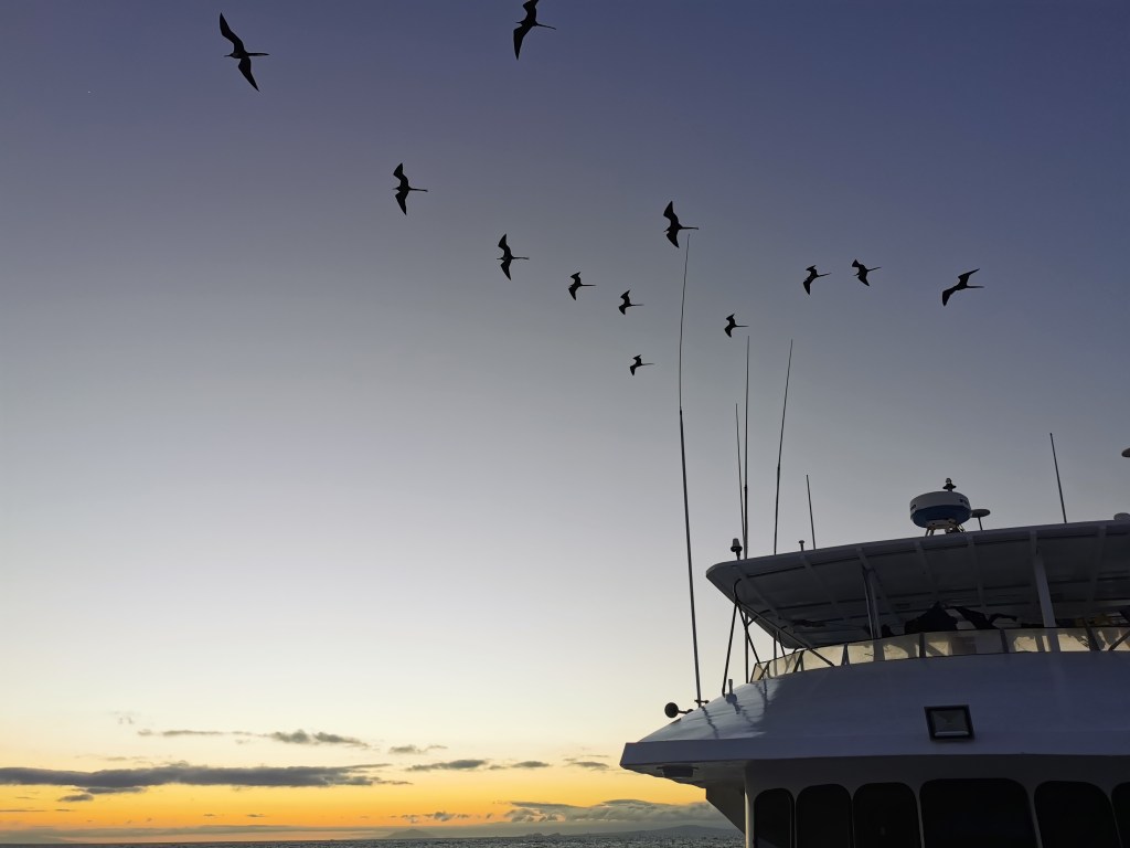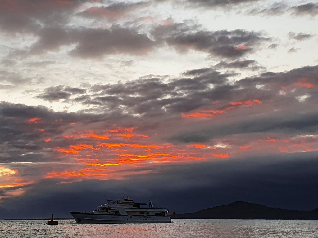 Our last activity of the day was some free time to wander along the beach separating the town from the ocean. It was a lovely place to watch the wildlife, grab a local beer and chill out at the end of the day. Once the clouds starting changing to burnished gold we returned to the Baluga for our first evening on the water. After another lovely meal a few of us played a couple of rounds of Yahtzee before heading to our cabins. This first evening and night were pretty choppy as we sailed for most of the night to get to our next destinations. This meant going around the exposed south-west corner of Isabela before finding shelter on the western shore. Luckily, this was as bad as it got for the whole trip and it still wasn’t too bad.