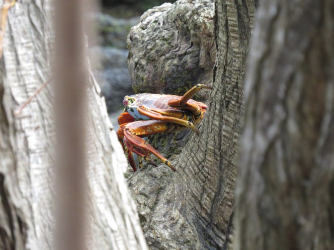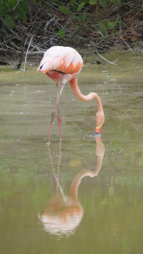 We walked around the different enclosures, enjoying watching the tortoises of varying ages and sizes. It was funny how the young ones still seemed ‘cute’ despite being the same size as a regular tortoise. After finishing wandering around the paddocks and briefly walking through the information centre, we carried on down the road to Pozas Salinas, or ‘The Salt Pools’. This was a little reserve where wooden boardwalks wound their way through the trees and around several pools. We had to be careful with the trees as many were manzanillo – poison apple trees. The fruit is covered in a latex that is poisonous to eat and will cause bad irritation of the skin if touched. But the tortoises have evolved to be able to eat them. We didn’t see any tortoises here but were treated to some flamingoes and other birds feeding in the salt pools.