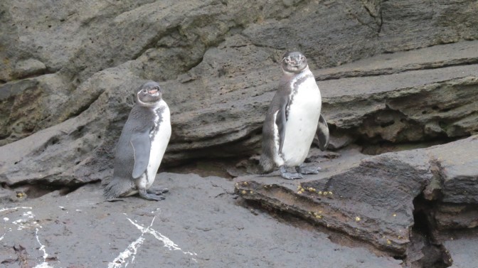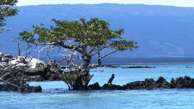 We hadn’t even gotten as far as the mangroves before we were treated to start of the constant stream of wildlife. The rocky outcrops at the edges of the bay were great places to rest for marine iguanas and frigate birds. We also got to see our first flightless cormorants and galapagos penguins, both of which are endemic to the islands. The penguins in particular were amazing. Despite their diminutive size they were fizzing through the water like miniature torpedos.