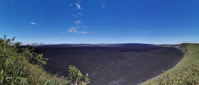 After lunch back on the boat, we went for our first snorkelling session. The Beluga had moved towards the peninsula of Punta Moreno and we then took the pangas to get closer to the shoreline. The first thing that I should mention is that the water around the Galapagos Islands is cold! Please don’t picture tropical islands where you can lie in the sea all day – even with the wetsuits we were both quite glad to get out when the time came. We still enjoyed it, however, and saw a multitude of fish, sea turtles and sea lions.