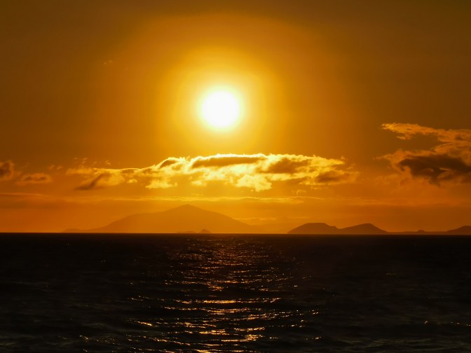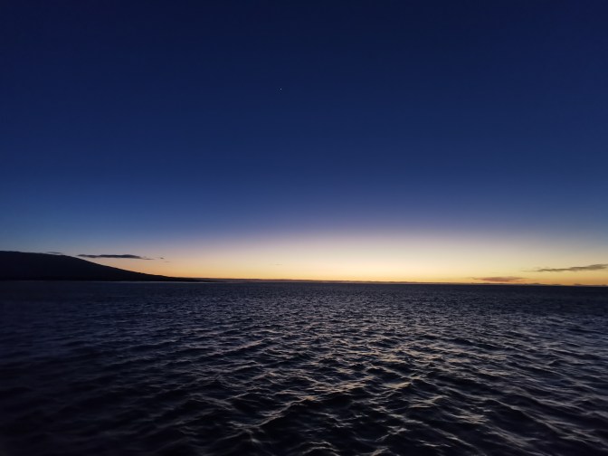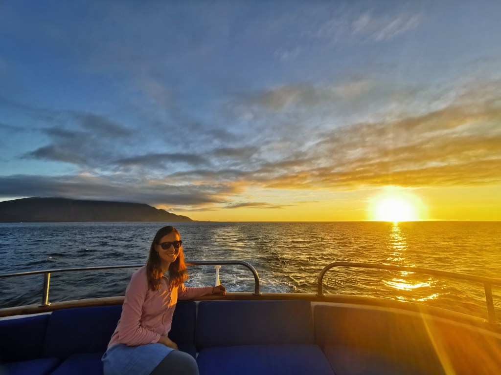 In the evening we were all outside on the deck enjoying our last amazing sunset on board the cruise. It was all very serene and peaceful but just as the sun was disappearing beyond the horizon, someone noticed that a pod of dolphins were swimming at the prow of the ship. They seemed to be racing the boat and when they picked up enough speed they’re jump clean out of the water. We’d been secretly hoping to see some and for it to happen on the last evening was amazing. But the best had yet to come. The dolphins seemed to have left so half of us had already made our way back inside in preparation for dinner. Whilst we were waiting there was a commotion outside so we quickly darted back out. By this point it had gone dark so I had no idea what the others who had stayed outside could be watching. I couldn’t quite believe what I was seeing. The dolphins were back, swimming and jumping alongside the boat but what was unbelievable was that they were glowing. Yes glowing. Not the whole animal but the edges. Breaking the surface, they were disturbing the bioluminescent algae in the water so you could see the outline of the dolphins. Its hard to describe such a magical experience. I didn’t even bother trying to take a photo as I just wanted to enjoy it but I promise you it happened – I don’t think I’d have the imagination to make it up. When they did leave and we went inside to eat we were all in a bit of shock, we couldn’t quite believe it.