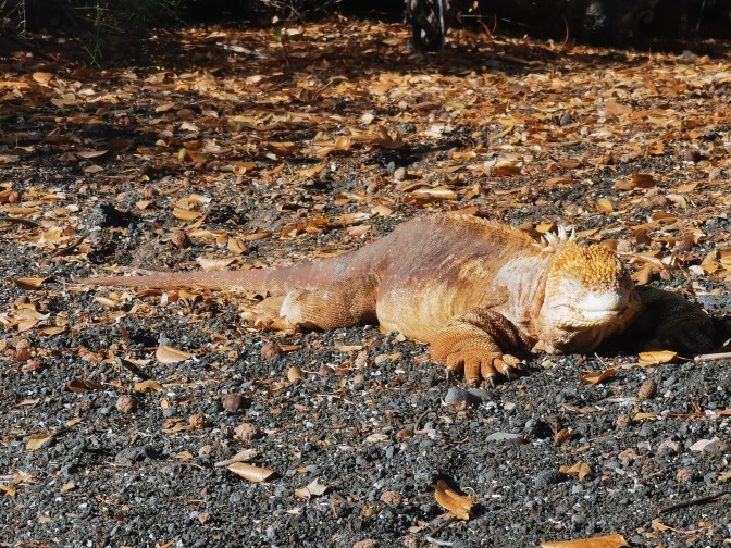 As well as these interesting aspects to the walk, there was some excellent wildlife as well. Not too far along the path we came across a giant tortoise. During our two weeks in the Galapagos, spread across multiple islands, this was the only tortoise we saw that was not either in a designated reserve or a breeding station. We also got to see several land iguanas. These iguanas differ from their marine cousins in terms of size, shape and in their beautiful orange and gold colouring.