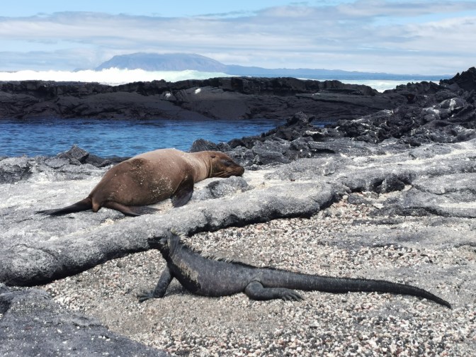 Whilst the iguanas were the main attraction, there was other wildlife to watch as well, although we unfortunately didn’t see any of the famous snakes. A majestic Galapagos Hawk surveyed the scene from its perch on top of a tree whilst lava lizards skittered along the floor away from your footsteps. There were also many sea lions lazing on the beaches.
