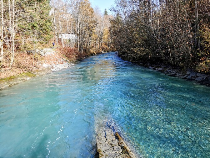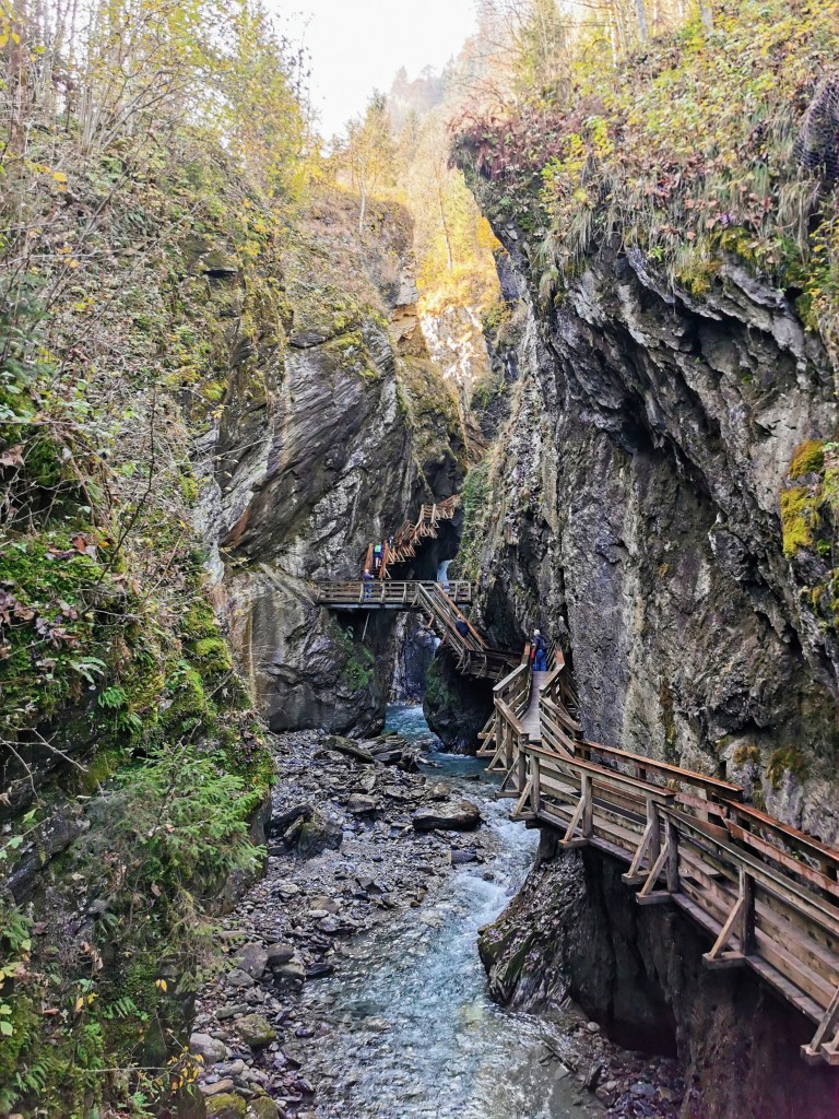 Given that we’d been driving for ten hours and arrived quite late the day before, we wanted to take our first proper day in Kaprun reasonably easily, but we were too excited to be there to do absolutely nothing. So, the compromise was to walk to and visit the Sigmund Thun Gorge. This attraction is walking distance from Kaprun – you basically just go to the river that runs through Kaprun and follow it up the valley for about three kilometres to get to the entrance. The walk itself is pleasant enough, with the river being a beautiful glacial blue.