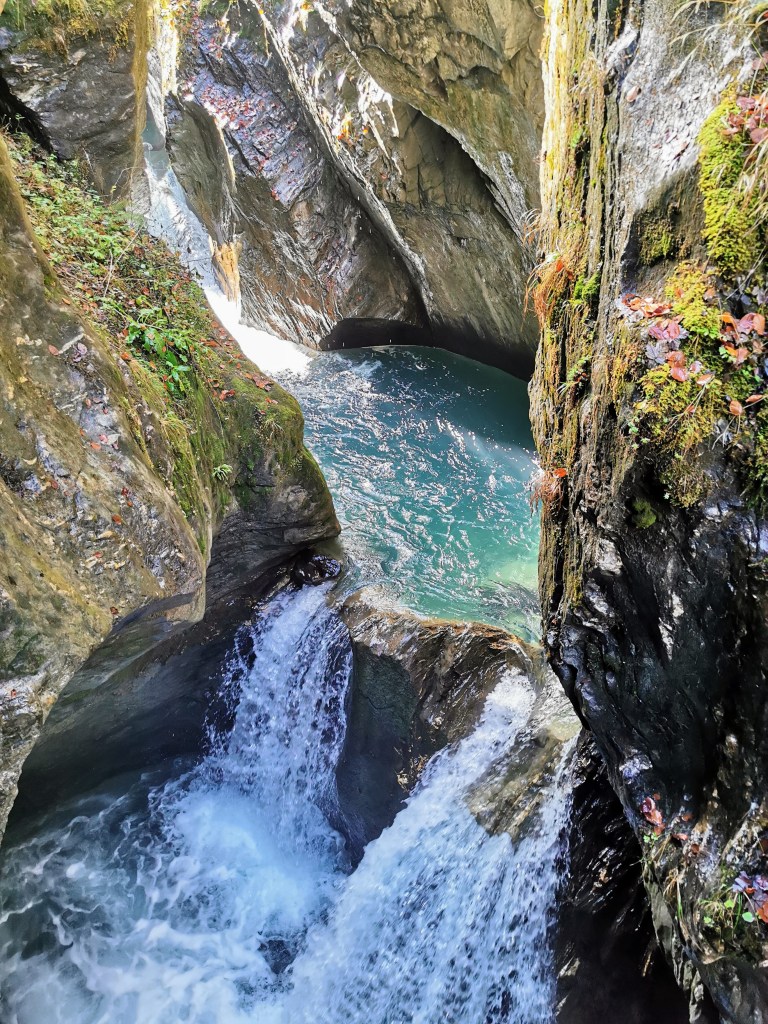 The gorge itself is really beautiful, with the river cascading down over multiple steps and the colour of the water contrasting with those of the stone and lichen. Given the time of year we went, there wasn’t too much sunlight, and that created its own charm, but I’d imagine the colours would be even better in the summer when there would be a bit more direct light getting into the gorge itself.