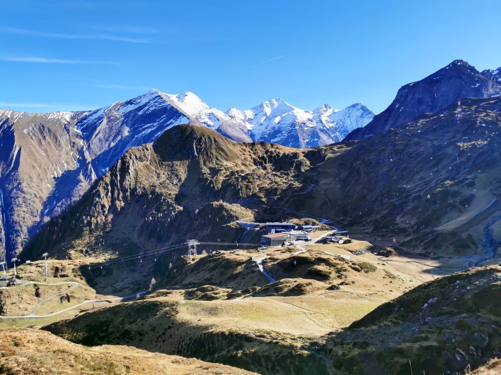 After stopping and having our lunch at the Klammsee, we still had the whole afternoon, so decided to carry on walking up the valley to the Kitzsteinhorn Cablecar Station. The walk was less than one hour but in hindsight, it would have been better to get the bus. The cablecar takes you up to the Kitzsteinhorn Ski Resort, but the top station also has viewing platforms, small exhibits and a restaurant that can be accessed by non-skiers. The reason for us to go there at this point was to get our bearings regarding the ski slopes but also to visit the viewing platforms unencumbered by all of our skiing gear. Also, we had six days of ski passes included in our package but the Summer Card only ran until the end of October. Use of this cablecar was included once in the Summer Card, meaning we could access the cablecar on that first day whilst only starting our ski pass access on the second day, meaning that we had access to the cablecars on every day of our trip, allowing for more flexibility regarding the weather. In the end, this level of planning was not needed given that the weather was so good throughout the week.
