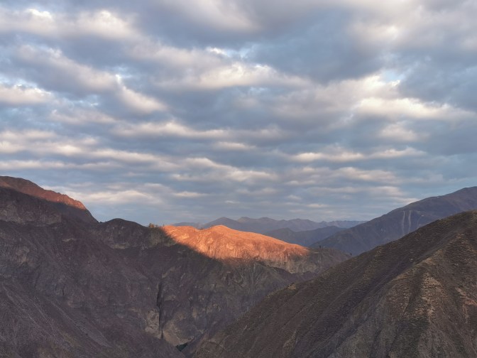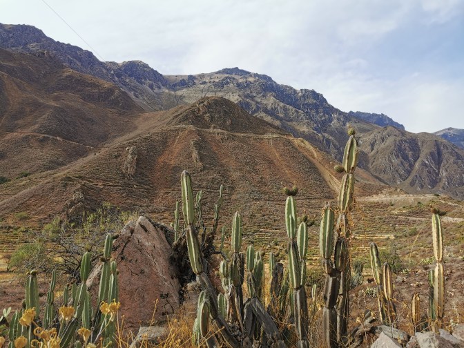 After so much going down, it was almost a relief to walk up for a bit. And it wasn’t too long before we reached our lunch spot. After this, there was still another couple of hours walking towards the spot where we’d spend the night. This couple of hours was ‘Inca-flat’, which basically means not-at-all-flat. But it was a pleasant enough walk and we got to see the canyon from a different perspective. The flora was very different from higher up in the canyon and we came across some pre-Incan terraces segregating the slopes.