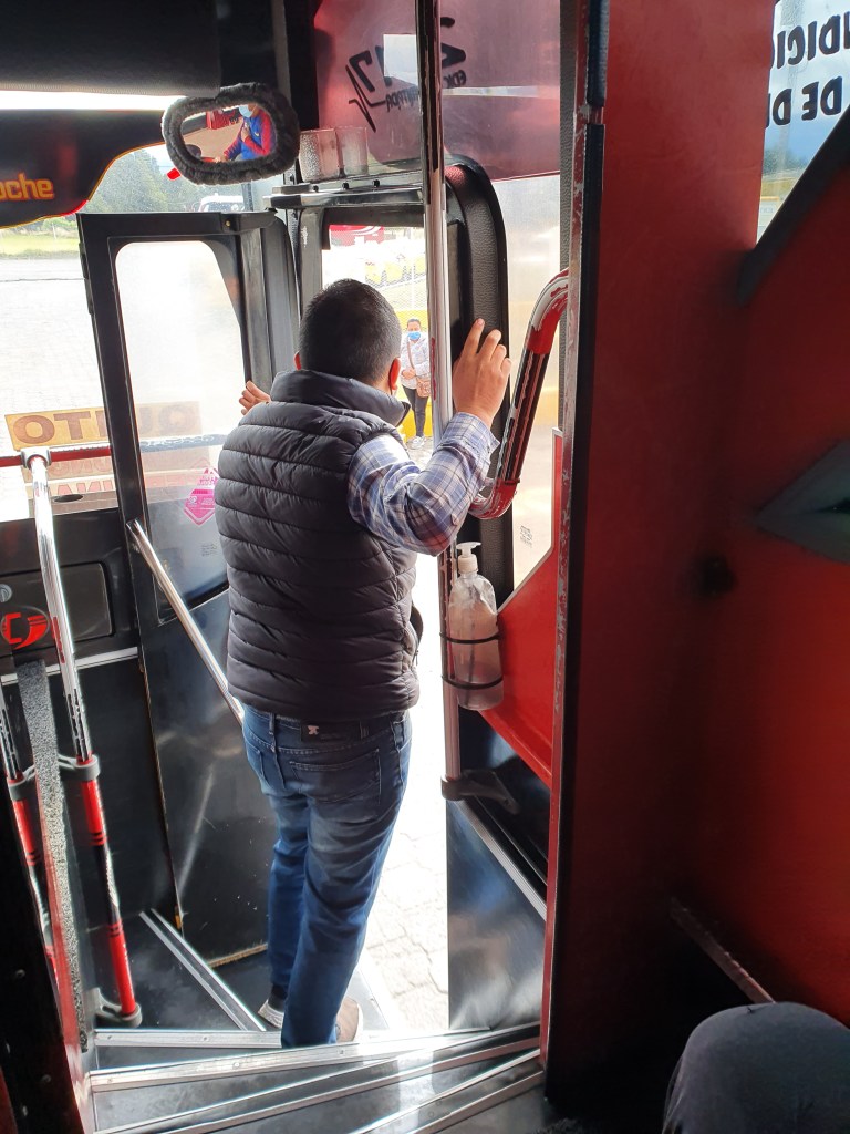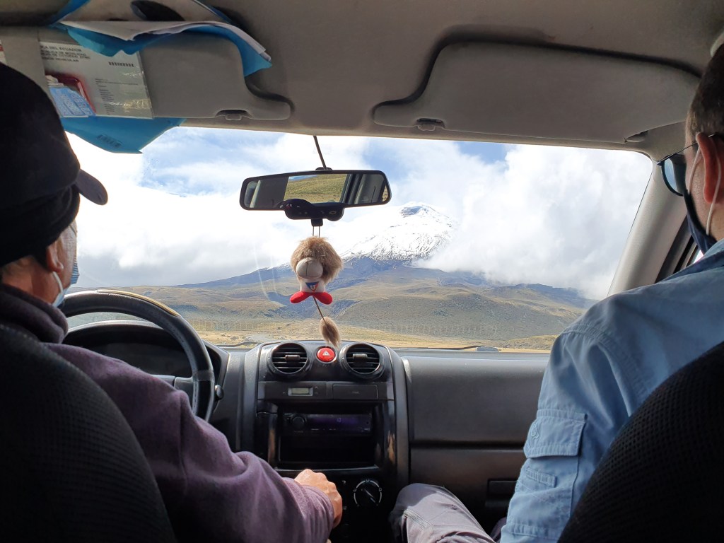 Getting to the entrance of the national park in which the volcano resides was a lot less hassle than we were expecting. Part of our worry was based on the fact that we had forgotten to check the most up-to-date times for the buses when we had arrived to the Terminal Tereste the evening before, and were relying on information from pre-COVID blog posts. We had been pretty tired after our trip from Quito, so weren’t aiming for the earliest bus, but were mindful of the fact that the weather was almost always better in the morning than the afternoon in that area. Thus, it was still pretty early when we got to the station, having grabbed a couple of pastries for breakfast on the way. We were lucky that the streamlined current service still had a bus heading out soon after we arrived. The bus continues all of the way to Quito, so if you are attempting this journey make sure you let the driver know that you wish to be let out at the entrance to the national park, as it’s nothing like an official bus stop. We bought the ticket on the bus itself (it was $1.50 each one-way) and the assistant who collected the money spent the first ten minutes or so shouting at passers-by from the open doorway or jumping to and from the bus, running along to try and hunt out other people for the journey. I’m guessing they get commission based on the numbers of passengers they have. This has seemed more common as we have continued our travels through South America, but at the time it was crazy to watch!