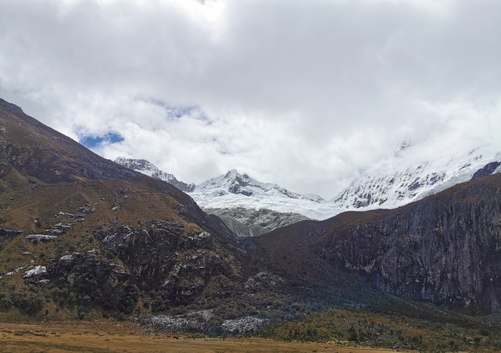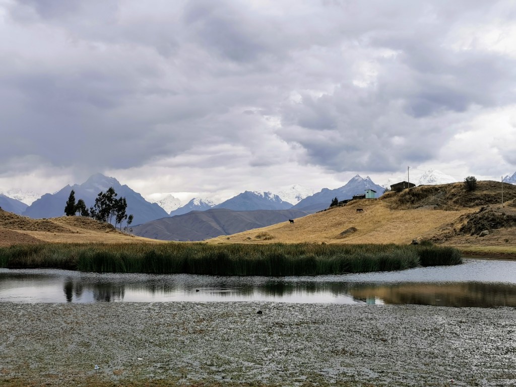 After a while, we made it to the laguna. Compared to other lakes in the area this one is not particularly special in itself, the main attraction is the views over the adjacent mountain range. Despite the thick clouds having not budged, we were still presented with a really nice view over some of the impressive peaks that make up the Cordillera Blanca range. We found a sheltered spot, given that the wind was quite cold, and had our lunch with the mountains laid out in front of us.