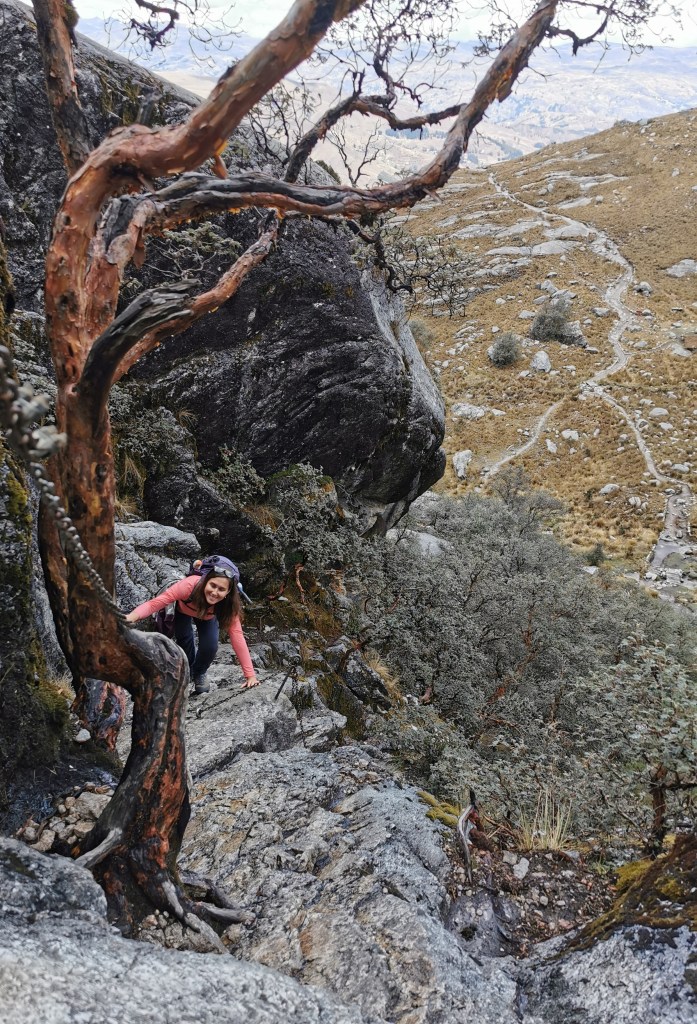 The way back down was fairly steep and I was glad to have my hiking poles. But once we met up with the original path we knew where we were going and it got progressively easier to hike (apart from the part with the first chain) so our speed increased. We made it back down to the bottom in good time to get our collectivo back to Huaraz.