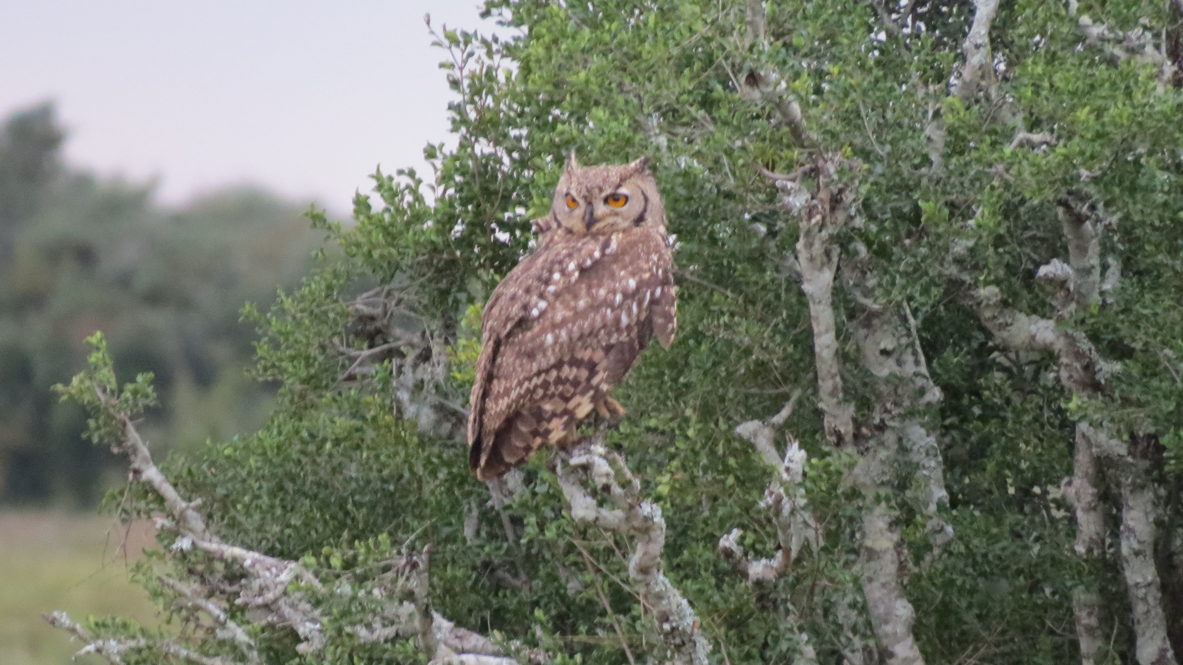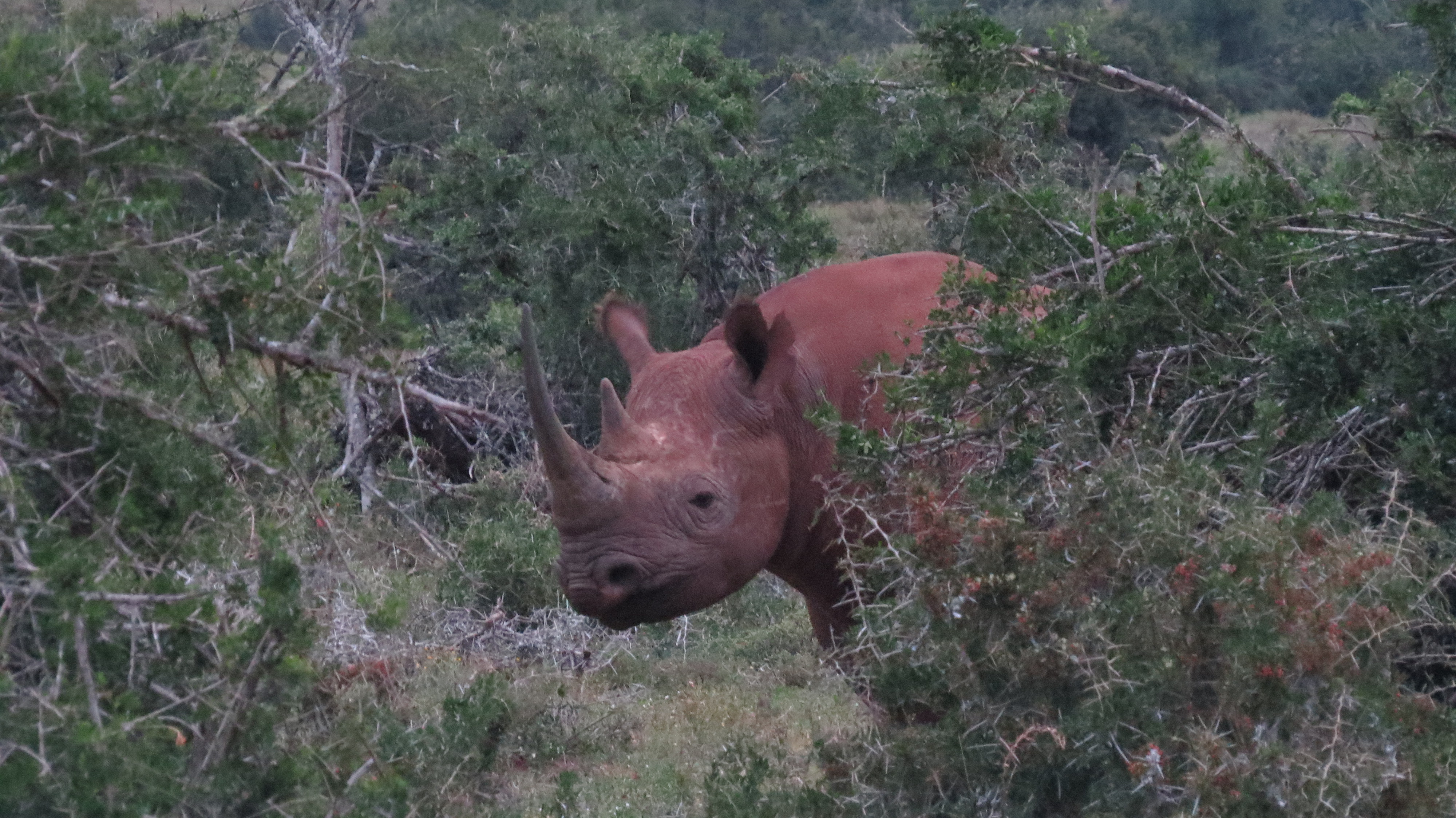 Despite our overall views of sunset and sunrise tours being a bit negative, this first tour was our most successful one of this type. There was only four of us on the tour with the driver, so we could use one of the smaller vehicles, and whilst the light was still good (not great due to the heavy cloud cover) we were lucky enough to spot warthogs, a yellow mongoose, a couple of Spotted Eagle Owls and multiple types of antelope. Then, as the light was leaving us, we came across a couple of black rhinos. This was an amazing experience and, despite the black rhino’s tendency to charge, we were close enough to one of them to see it smelling the air and judging our threat. Luckily we must have passed the test as it left us alone. What we weren’t to know is that this would be the only rhinos we would see on our trip. The poaching situation in Kruger has become so bad in the last ten years that you will be lucky if you come across one.