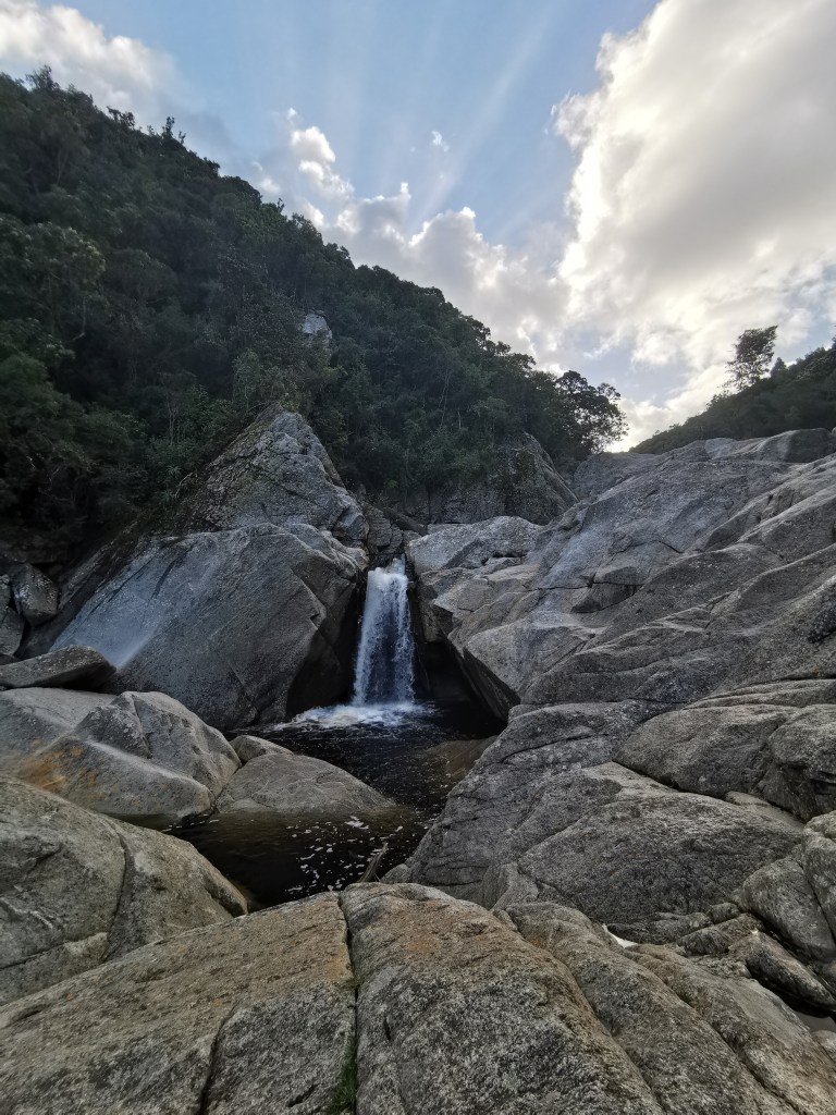 After a while the trail started making its way up higher and from across the valley we heard deep calls and were fortunate to spot a large baboon climbing in the trees on the opposite side of the valley. At the culmination of the walk, out of nowhere you walk into this area of huge boulders around the river, with the centrepiece being a very picturesque waterfall. This was a perfect place to have our late lunch and sit and relax whilst enjoying the view.