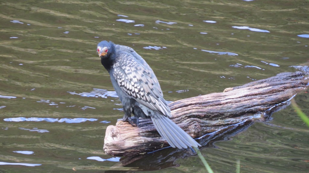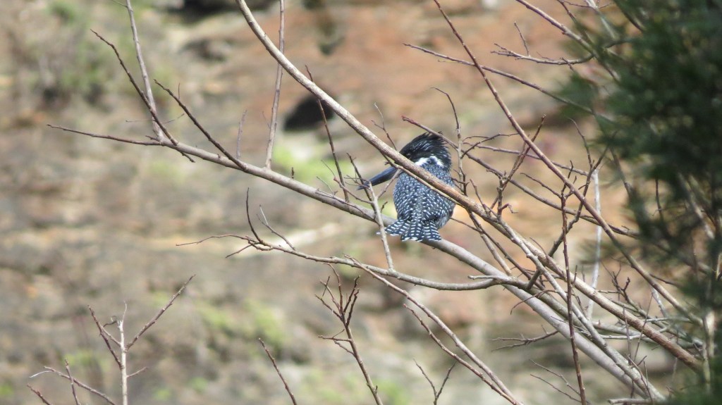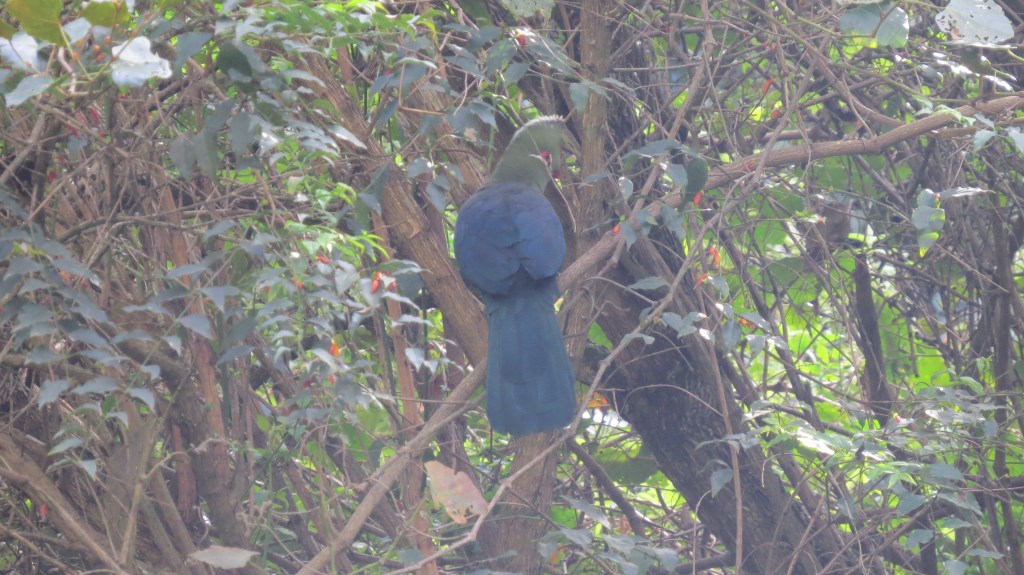 The path on the other side of the river was pleasant but was again improved by wildlife sightings. We saw Double Collared and Amethyst Sunbirds and Turaco Lorries (which we’d spotted glimpses of on the Blue Druiker Trail but without getting a good look), a rather scary looking Reed Cormorant, and then Radka made a fantastic sighting of a Giant Kingfisher.