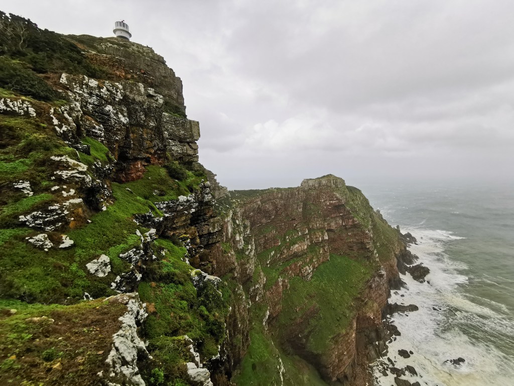 Walk to the lighthouse – During the first visit, we drove to the tip of the peninsula and took advantage of a break in the clouds to walk up to the ‘Old Cape Point Lighthouse’. We actually got a little bit of sunshine on the way up and this led to some attractive views across the cliffs towards the ‘New Cape Point Lighthouse’, with the Cape of Good Hope stretching out behind it. Of course, we’d only been at the top for two minutes before Radka spotted some dark, fast-moving clouds heading in our direction and within five minutes the heavens had opened and we got drenched with a mixture of rain and hail. But at least we had gotten up there, and it certainly would be a nice place to go in better weather.