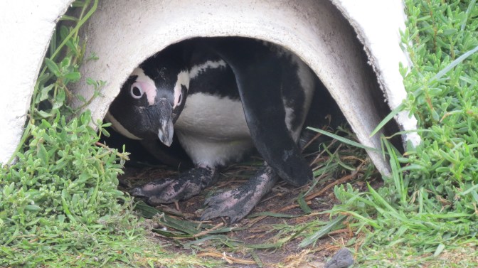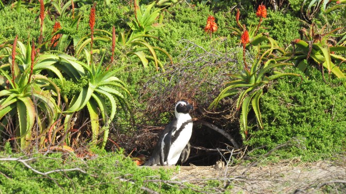 After leaving Hermanus, we drove on and visited Betty’s Bay. The reason for going there was to visit the African Penguin colony that lives there. And it certainly did not disappoint! There is a little boardwalk along the coast where you can view the dozens of penguins dotted about.