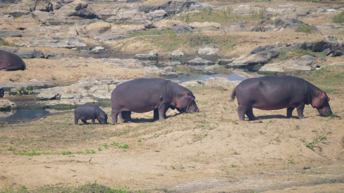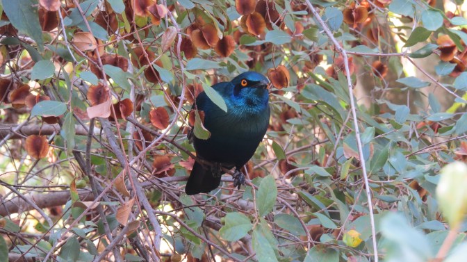 On the drive back we paused at the bridge next to the rest camp and were treated to sightings of crocodiles, hippos swimming around and more elephants. And then back at the rest camp, we got to enjoy the antics of the cape glossy starlings on our way to another Mugg & Bean breakfast.