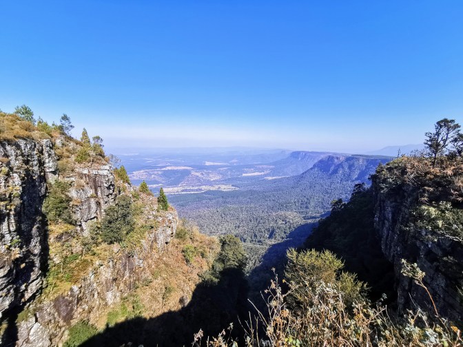 We still had a bit of time before we needed to head off towards Johannesburg, so we went to see a couple of the highlights around Graskop. This area has its own tourist trail, with multiple waterfalls and viewpoints within easy reach of each other. This is what we would have done with our extra day if we hadn’t stayed for the extra night in the park, but as it was, we only had time to visit a couple of them, so we first drove to The Pinnacle Rock. This attraction requires a small payment to enter (better to have cash with you) and a small path leads to a viewpoint. From there you look out into a canyon that a has a large column of rock standing independently in the middle. It’s a nice view, but that’s it and you’ll be done in 5 – 10 minutes. Even though it didn’t cost much, I’m not sure it was worth it!
