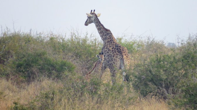 We then moved into an area with a denser covering of trees and stopped to watch a lone giraffe wandering through the trunks. Just down the road from this there was a cluster of cars so we stopped by them. We couldn’t see anything so asked one of the other motorists and they said there was a lion lying down next to the large rock we could see amongst the trees. Try as we might we couldn’t see it. But after a little bit, the giraffe came wandering in that direction, completely oblivious to what lay in wait. But it seems that the lion was also completely oblivious to what was coming as suddenly it seemed to jump straight up in the air in fright before running away. It was such a surreal and yet hilarious moment, as the apex predator was shocked in such a way. I just wish I’d been able to catch the moment on film!