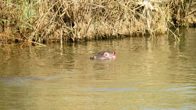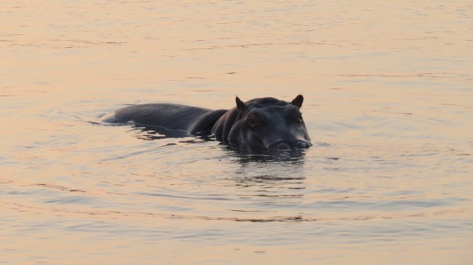 Despite our disappointment, we decided to head out for sunset before the gates shut for the night. There are couple of really nice spots near by, and after having a quick look at the ‘Sunset Dam’, we headed back to the bridge that we’d crossed twice earlier that morning. Whilst there was still decent light we had fun watching the buffaloes with egrets perched on their backs at the side of the river and then drove to the centre to get a good spot for the actual sunset. It was an amazing place for it, as the sun descended right into the river, creating beautiful colours and making silhouettes of the hippos swimming below. It was not what we’d hoped for from our evening, but it was a pretty decent replacement.
