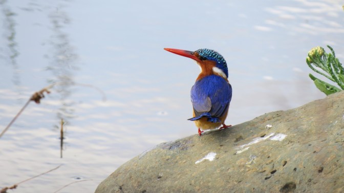 Then, as we were approaching a small bridge that crossed over one of the Sabie River tributaries, a large monitor lizard walked out in front of us. And as we watched it lumber across the road, a streak of colour caught our eyes and suddenly there was a beautiful malachite kingfisher perched on the edge of the river, scanning the water for fish. If we hadn’t stopped for the lizard then it is very doubtful that we would have even noticed the kingfisher. It just builds upon our belief that sightings are more luck than skill.