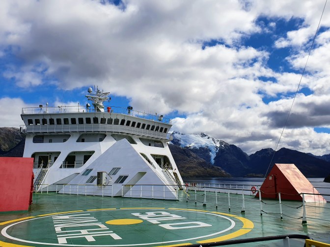 The final option was to get to the port town of Puerto Montt (either flying or, like we did, by taking an overnight bus from Santiago) and take the Navimag Ferry to Puerto Natales. The journey should take four days and three nights to complete, and as well as being a practical travel option it gives you the opportunity to see some of the Chilean Fjord region, which would be inaccessible otherwise. This is not a stereotypical cruise ship as it still serves as a ferry for the indigenous community that lives at Villa Puerto Edén, and acts as their only means of transport to access the ‘outside world’. This ferry does not run all year but only from October to March approximately once per week. There can be cancellations due to the weather, however, especially at the start and end of the season. Thus, if we had flown to the south straight away, during the time when we then would have wanted to travel back north, it may have been that the ferry was no longer running. So, if we wanted to take the ferry, then the way south was our only option.