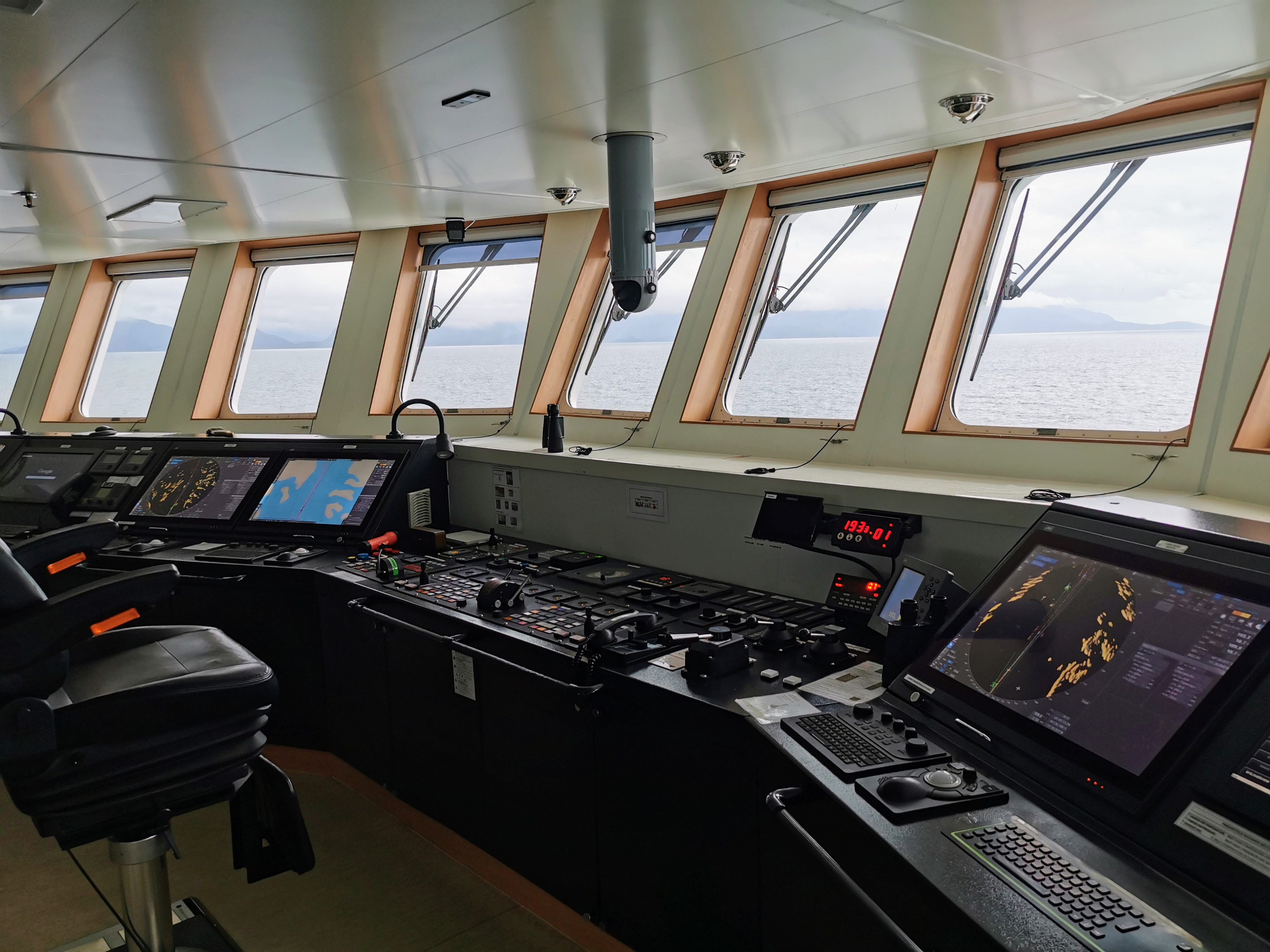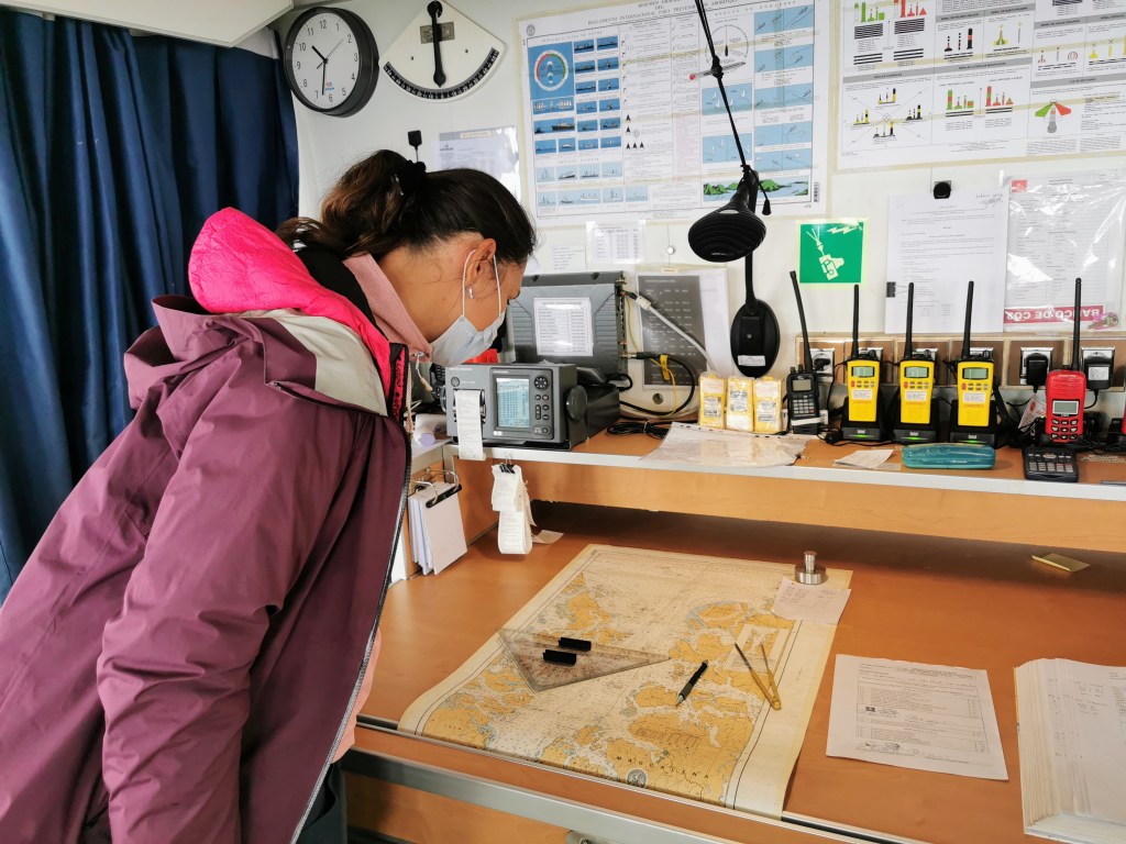 Later in the morning the passengers were invited to the command deck to see how the boat was run. I don’t know if this is common practise or if it was just due to the small numbers of passengers during that specific trip, but it was very cool to chat to the captain and learn a bit about the processes involved in getting a boat of this size to its destination. As well as the high tech equipment, the course was still plotted in pencil on large paper maps of the area, which made the whole experience feel a lot more authentic for some reason.