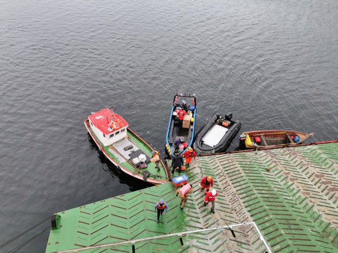 A while later we arrived at the only settlement in the region; Villa Puerto Edén. This small village now houses what is left of the indigenous community that once roamed the islands of this region. The painted houses looked quite pretty despite the dullness of the day. At this point the ferry stopped so that a couple of speed boats could come and greet us. One was collecting supplies from the ferry whilst the other was picking up passengers that had travelled from Puerto Montt. It is amazing that this is the only way for this community to reach the ‘outside world’.