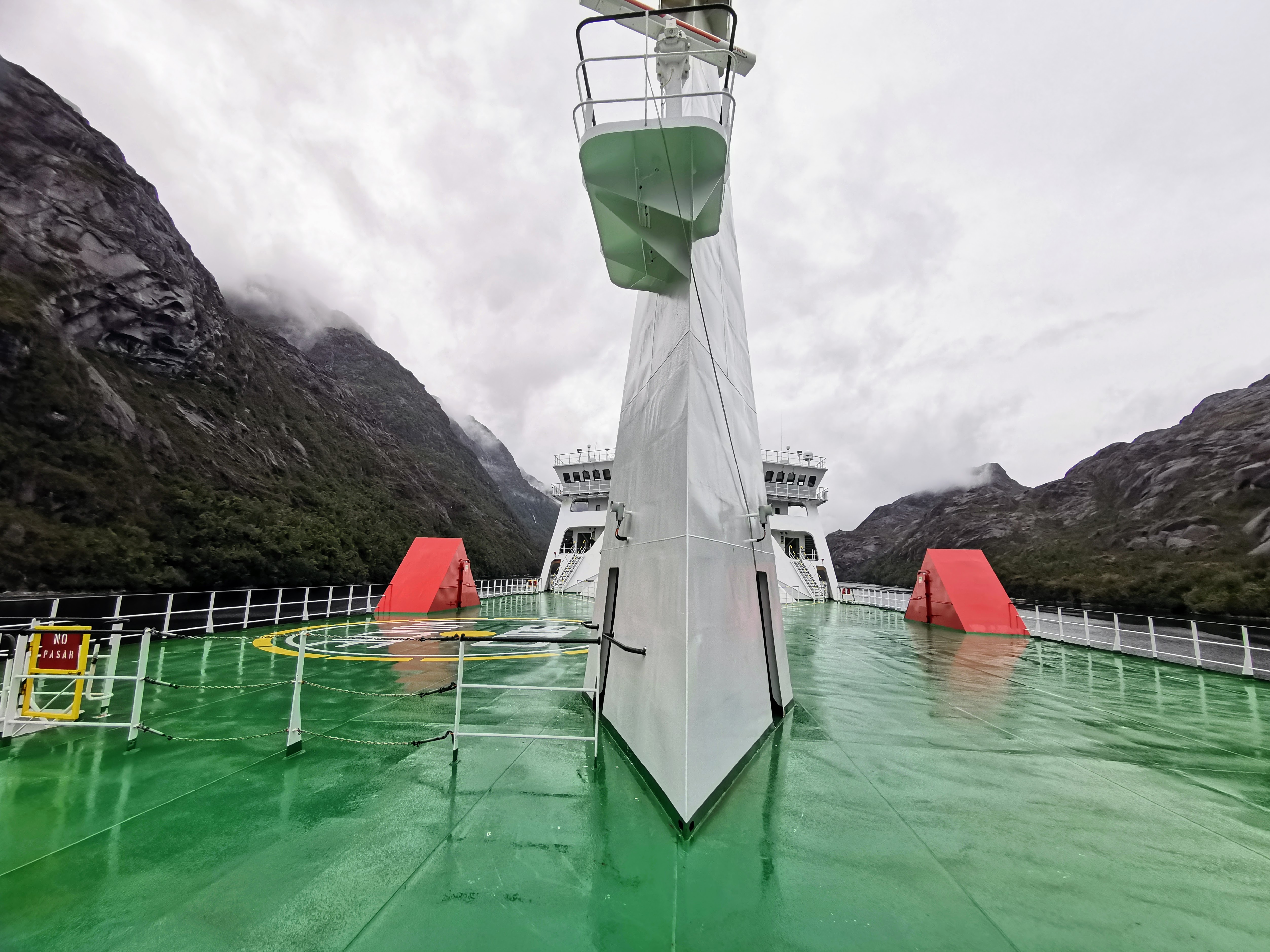 In terms of your free time, I’d like to emphasise again that this is a ferry as opposed to a cruise ship. So please don’t expect gyms, shops or even internet connection! There is a very small exercise area where the guide led a couple of yoga sessions, but I think this is normally just for the crew and off-limits to the passengers. At least when we went, there was no wifi connection on board and you can forget about mobile phone service once you get away from Puerto Montt. We were fully aware of this before we left and actually saw it as a perk of the trip. Whilst our travelling up to that point was amazing, it had been very hectic and we rarely made time to slow down and relax. The disconnection really added to the slow and relaxed feel of travelling by ferry. As such, we made sure we had plenty of books on our kindles before leaving along with a pack of playing cards to keep us entertained. I also had my laptop, so I was able to sort some photos on my hard drive and write the notes that would turn into this post three and a half years later… So most of our days were spent sat in the canteen area (which is available outside of meal times as well); or wandering the decks when possible to enjoy the views or hunt for wildlife. The guides also made an effort to entertain the guests. There were information sessions about the local area and its culture and wildlife, a couple of movies played during the evenings, yoga sessions and several trips to the bridge to see how the boat was sailed (although I don’t know whether or not the last two of these were just because there was so few people on board). The main guide also played his ukulele in the cafe at one point and was pretty talented! So we were never bored and certainly enjoyed our trip despite the weather meaning we ended up staying inside more than we would have wanted to.