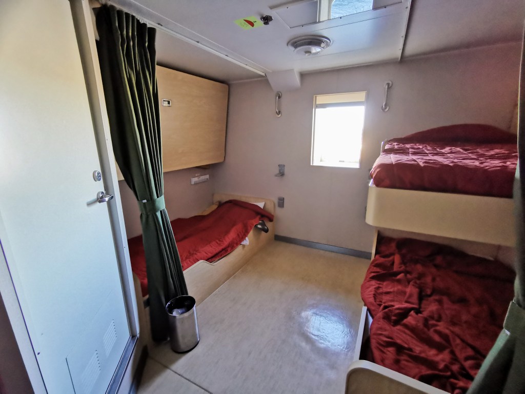 Due to COVID, we couldn’t join others in a cabin so had to pay for our own. But, as already mentioned, because we phoned the office whilst booking they gave us 10% off the price compared to on the website. The cabin we chose was the cheapest option, so it was fairly small and without a porthole, but for two people (rather than four) it was absolutely fine. If you are sharing the cabin with two more people (potentially strangers depending on the option you pick) then it would feel pretty cramped. But, then again, we rarely spent that much time in the cabin other than for sleeping.