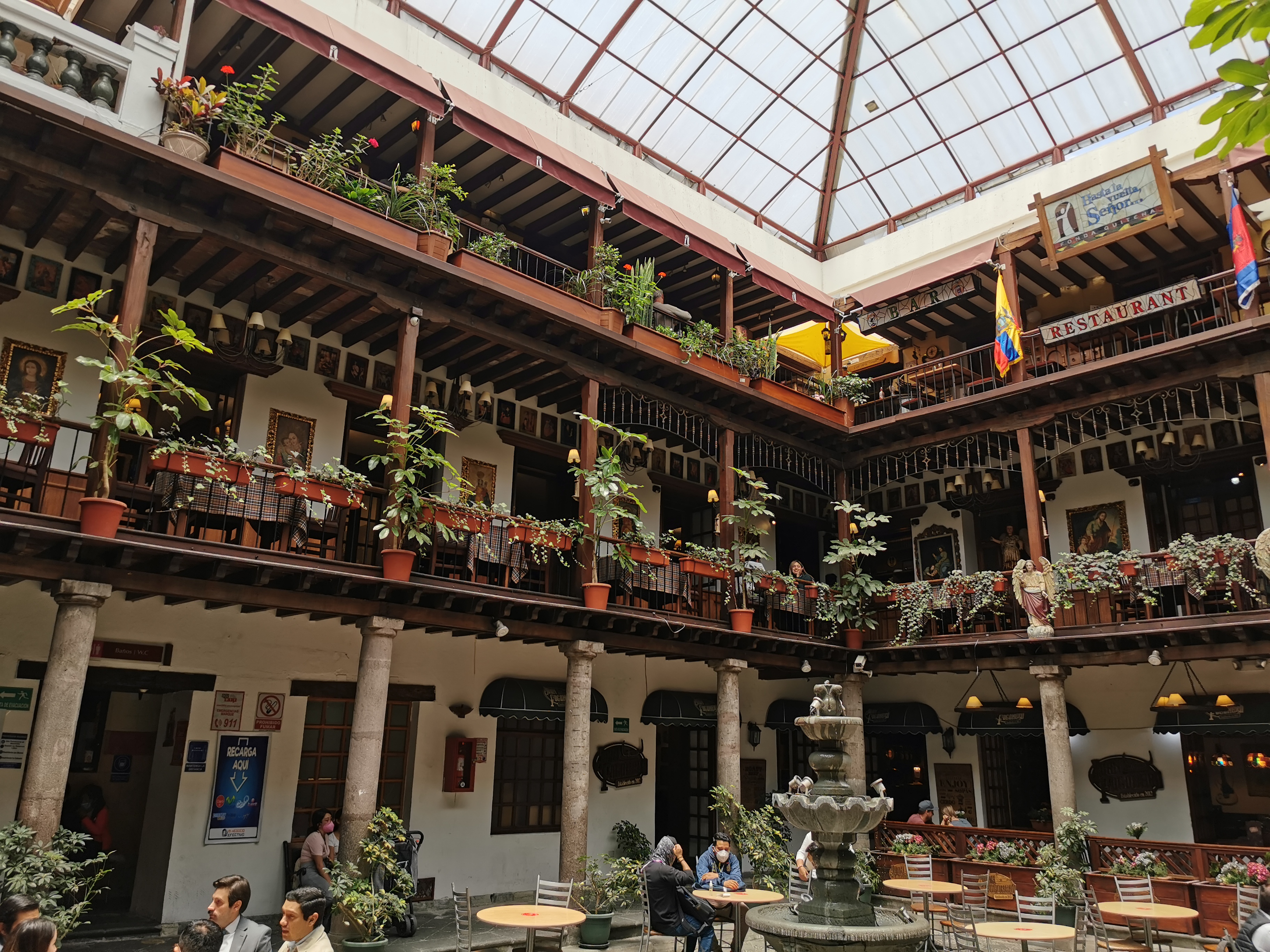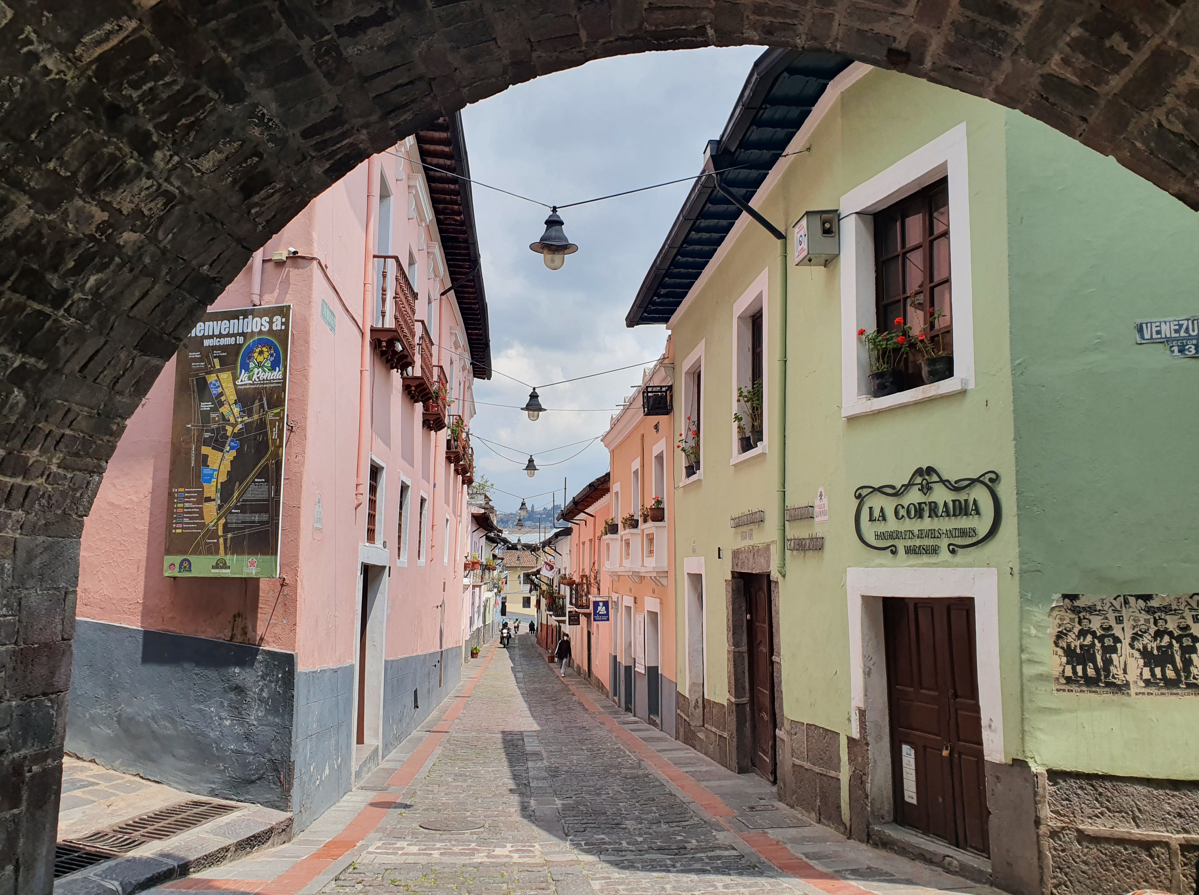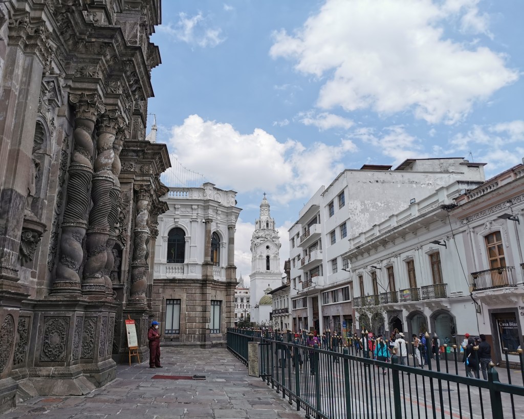 Free walking tours are normally easy to find online but in this instance we did the one organised through our hostel. It was focused around the historical centre of Quito and lasted between 2.5 and 3 hours. We walked through pretty streets adorned with nice decorations and interesting architecture; we passed by a myriad of different churches, basilicas and cathedrals; stopped and rested in multiple plazas of varying importance and popularity; discovered hidden courtyards that we would never have found by ourselves; and ended the tour by walking through the colourful La Ronda district.